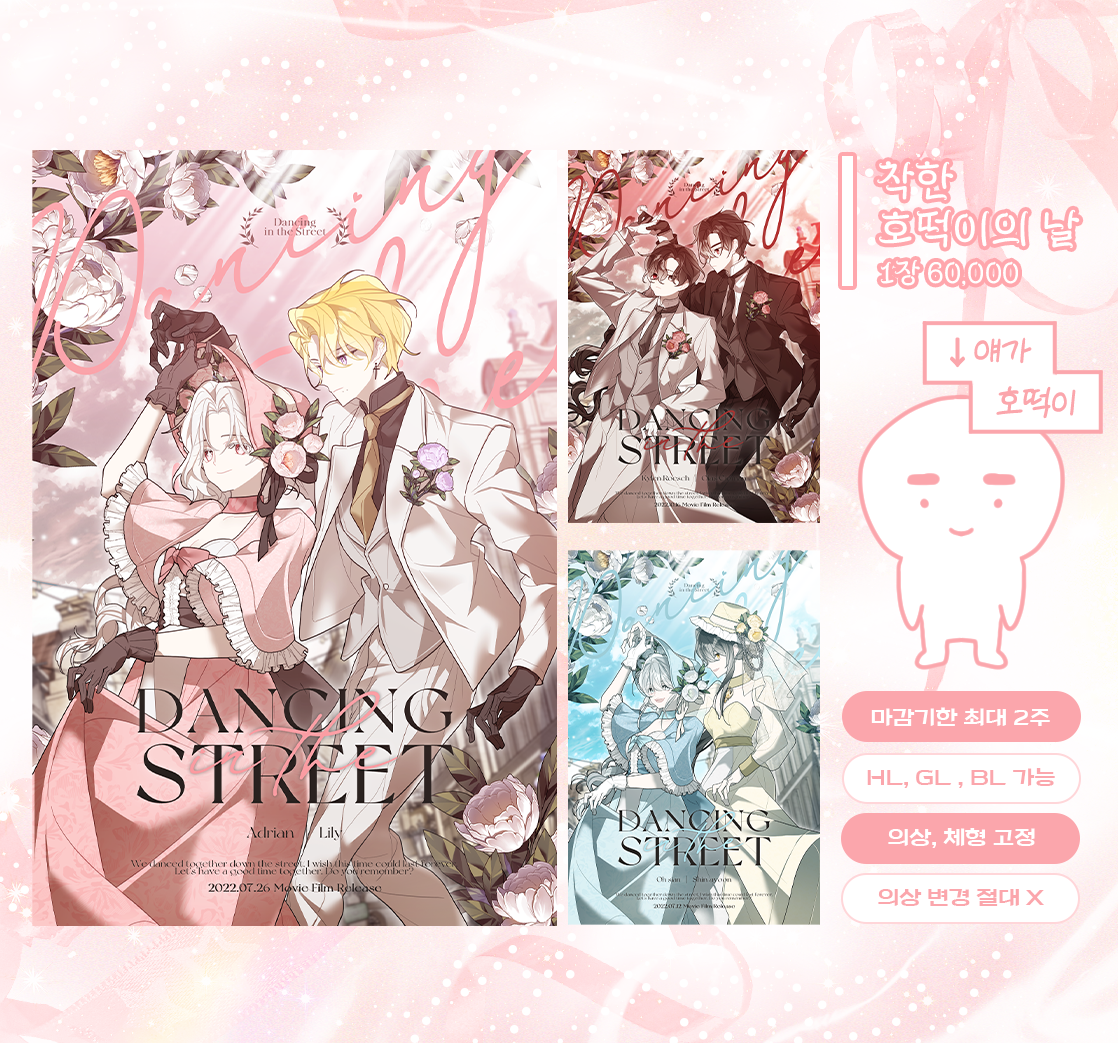 - 자료 이미지 외 텍스트로 적어두시는 부분들은 아예 참고하지 않습니다. 요청사항이 있다면 꼭!!!!!!!!!!!!!!!! 신청서 이미지 내부에 작성해 주세요. 특히 의상색 지정의 경우 꼭 신청서 양식 이미지에 작성해주시길 간곡히 부탁드립니다.